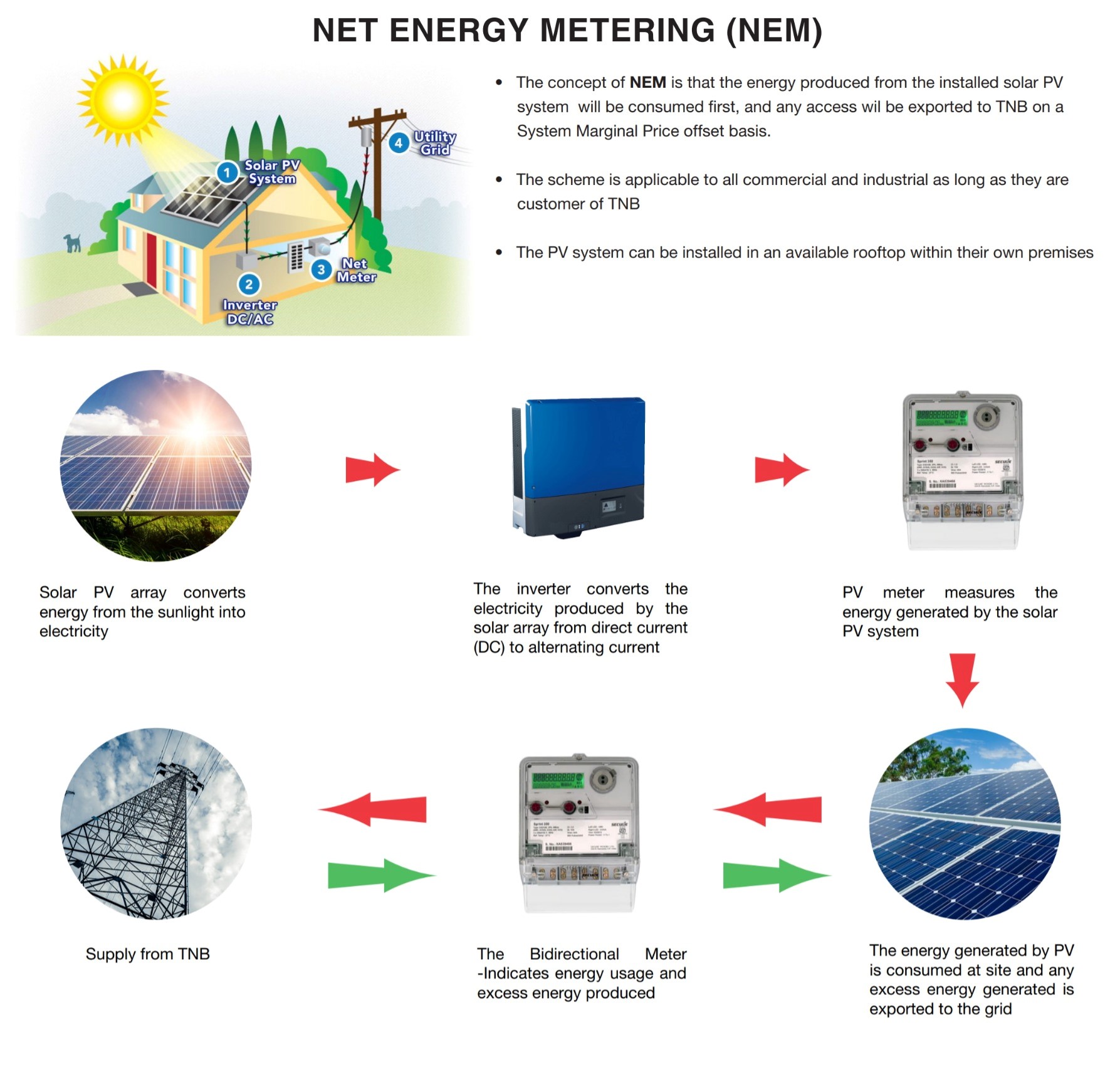Effective on 1st January 2019, SEDA Malaysia announce the Net Energy Metering (NEM) will be improved by adopting the true net energy metering concept and this will allow excess solar PV generated energy to be exported back to the grid on a “one-on-one” offset basis. With the scheme, it will improve the return of investment of solar PV system and effectively to hedge against fluctuation or increase in electricity tariff in the future.