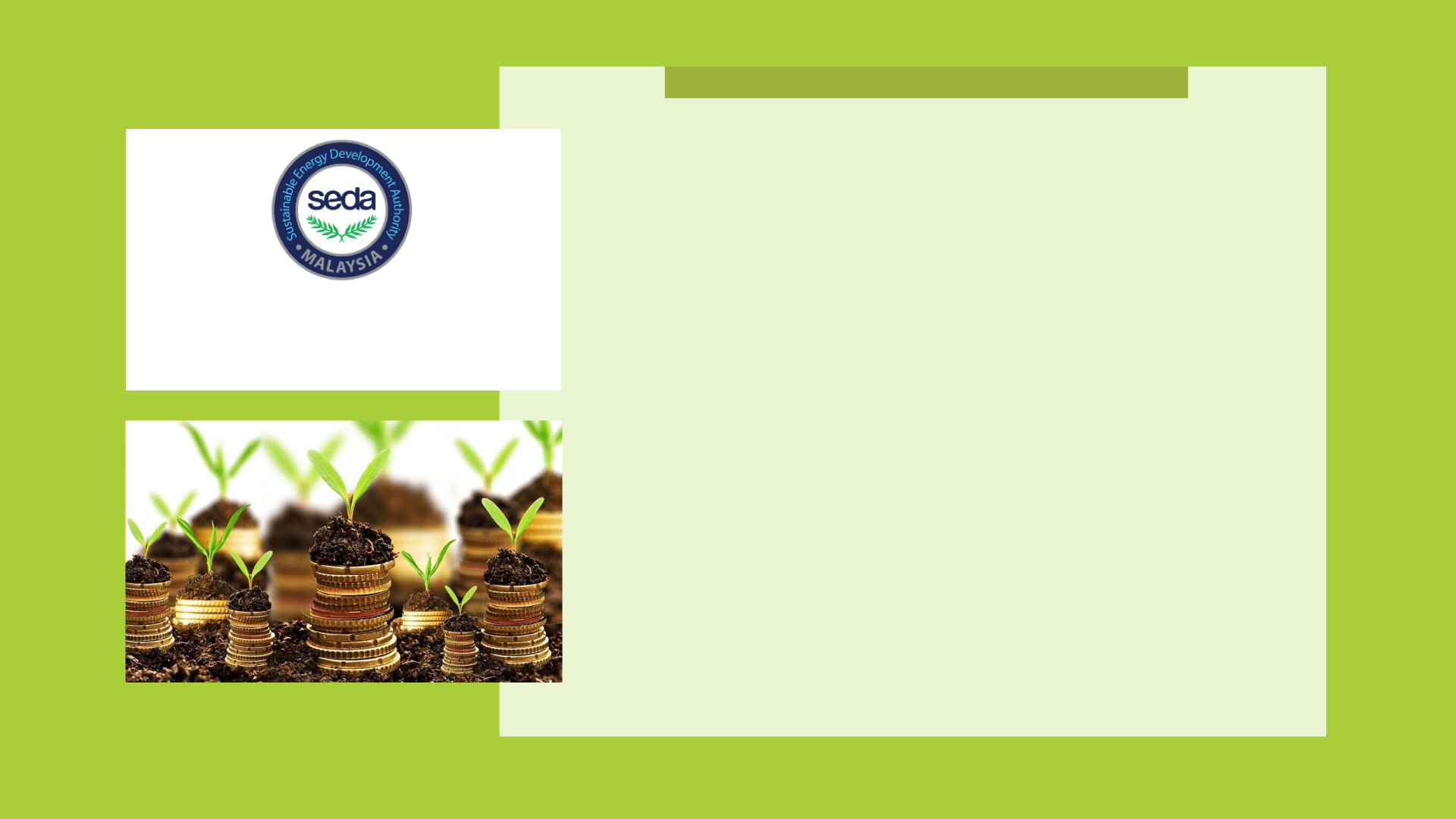 The Sustainable Energy Development Authority Malaysia is a statutory body formed under the Sustainable Energy Development Authority Act 2011 which makes Brilliant Solar eligible for TIF, NEM, and other programmes under SEDA.